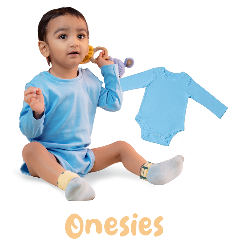 Premium cotton full sleeve Onesie / Bodysuit for boys / girls - Blue solids