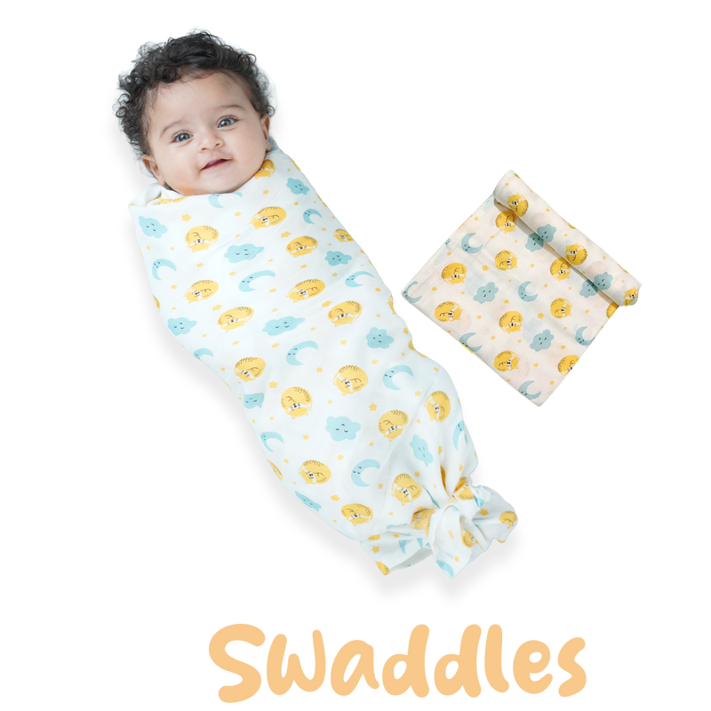 Cuddle up in Cat And Moon Print Bamboo Swaddle