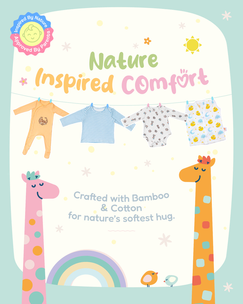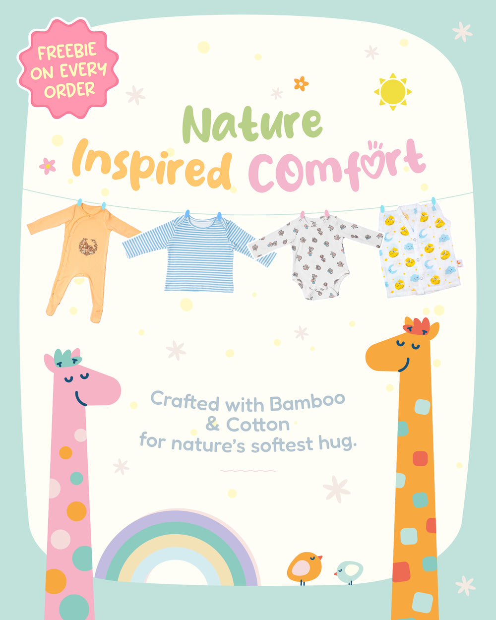 Premium cotton full sleeve Onesie / Bodysuit for boys / girls - Giraffe print